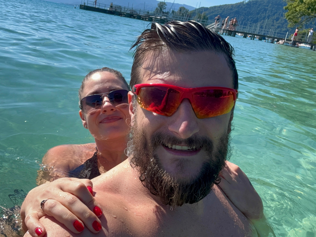 My se vydáme k dalšímu z jezer, teď je to Mondsee nad kterým se tyčí obrovská skála což nás opravdu ohromí. Když se pak ale vydáme na cestu k poslednímu z jezer na naší cestě - Attersee, jedeme podél něj směrem na Seewalchen am Attersee a to jsme už opravdu jen v němém úžasu. Je to jak z plakátu, naprosto nádherné a už nelze odolat, takže zastavíme na Parkplatz Freibadanlage Litzlberg, rozbalíme na zdejší pláži plachtu a jde se do vody. Vydržíme tu na sluníčku pár hodin a perfektně si odpočineme.