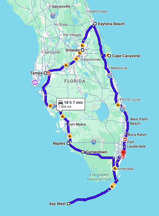 Po zápase zajedeme nakoupit do Walmartu a jedeme skoro hodinu zpět na ubytko v Miami Beach, užíváme si zářící město, neony v ulici našeho ubytování nás naprosto ohromují. Ráno musíme pokoupit několik MAGA kšiltovek, projít se po pláži, provedeme checkout a vydáme se na cestu na jih. Po cestě si zastavíme na kafe ve Starbucksu, dáme výbornej oběd v Arby's a mezitím sháníme America's Best Chew Tabbaco, který musíme dopravit kamarádům do Čech.