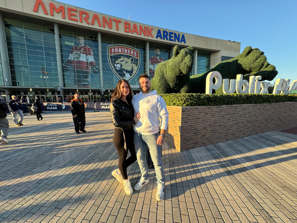 My si ale ještě zajdeme na oběd do Denny's, který nám hodně dobře přijde k chuti. Poté vyzvedneme auto z garáže a jedeme skoro hodinu na sever, kde vyzvedneme v Apple Aventura telefon, takže Páti dušička má obrovskou radost, zkoukneme ještě TESLA Store a popojedeme k Amerant Bank Arena, kde nás čeká NHL utkání domácích Panthers proti Buffalo Sabers. Vše nám pěkně odsejpá a jediné co není moc příjemné, jsou popadaní (rozsračkovaní) leguáni, těm to fakt moc nesedlo.