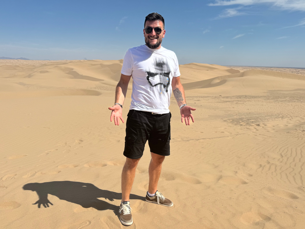 Po cestě se ještě dostáváme k obrovským povrchovým dolům Western Mesquite Mines Inc a k písečným dunám u Hugh T. Osborne Lookout Park, které nás naprosto odrovnají, tohle jsme nečekali, je tu 47 stupňů a připadáme si jak v Dubaji. Změny prostředí jsou tu nečekané a úchvatné.