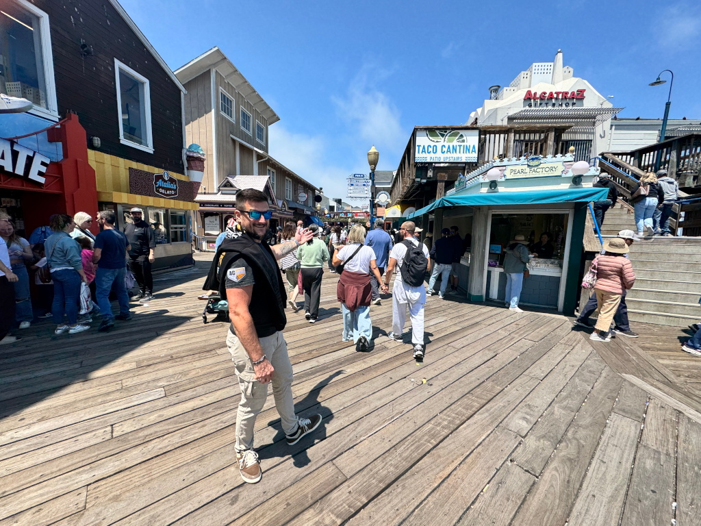 Když máme Skály dost, pokoupíme suvenýry a necháme se odvézt zpět na pobřeží, kde se projdeme na proslulém Pier 39. Toto molo je místní promenádou se vším, co k tomu patří, suvenýry, obchůdky, trhy i kolotoče, či divadla pro děti na každém rohu a nesmí chybět hrající si lachtani. Celkově je Frisco směsice různých kultur, je to příjemné místo, projedeme ještě několik velmi krásných oblastí, třeba Alamo Square Park, Lombard Street (snad jedinou klikatou uličku tady) a konečně se vyjasnilo, tak můžeme i na Fort Point National Historic Site, odkud máme konečně parádní výhled na Golden Gate Bridge. Byl to krásný den, plný skvělých zážitků. Jsme ale i docela rádi, že si už jen dojedeme nakoupit a můžeme jet na ubytko vorazit.