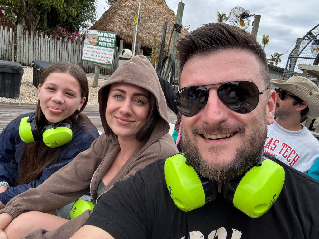 Vedro dneska rozhodně nebude, bez mikiny to nepůjde, ale déšť naštěstí přestane a to co nás čeká můžeme v klidu absolvovat. Dojedeme na Alligator Farm Everglades, na recepci provedeme check-in a hned dostaneme instrukce, jak se dostat ke vznášedlům (airboat), kterými nás provezou po okolních mokřadech. Krom zábavného výkladu nás žene vpřed Chevy motor o výkonu 420 koní, takže jsme rádi za sluchátka, které máme během jízdy nasazeny. Pilot nás rozhodně nešetří, sviští to dost dobře a když s námi udělá několik otoček, jsme mokrý jak my, tak i celá loď plná vody, ale je to kuwa prdel - tohle nás baví, kam se sere lunapark.