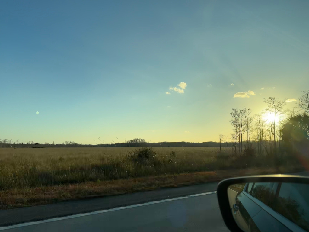 Obecně mají aligátoři stejný problém s chladným počasím jako leguáni - nejsou pak moc fresh na pohyb, takže následná procházka po farmě spíš připomíná aligátoří lapidárium. Naštěstí tu mají lišky, rysy, kapybary a třeba i papoušky, takže je na co koukat. Když máme farmy dost, přejedeme ještě k Everglades návštěvnickému centru a pak už si to praskáme několik hodin indiánskou rezervací kmene Miccosukee do Naples. Cesta je harmonická, plná nádherných výhledů a naprosto úchvatných scenérií.